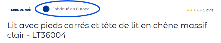 Les produits fabriqués en France son facilement identifiables par une mention de cette information sous le titre de l'article :