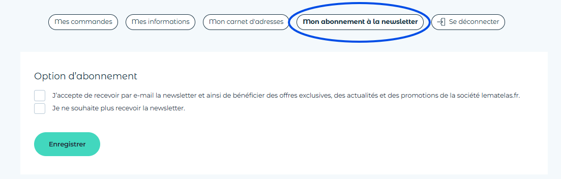 Il vous suffit ensuite de cocher/décocher la case “J'accepte de recevoir par e-mail la newsletter...” et de cliquer sur enregistrer.