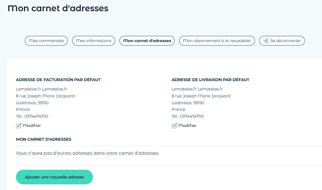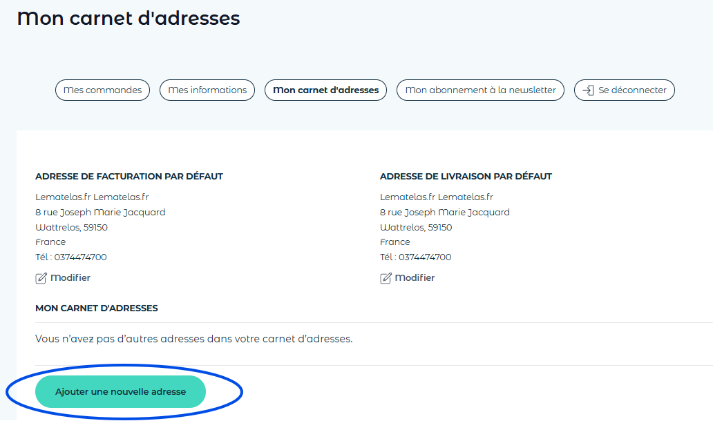 Si vous souhaitez que cette nouvelle adresse devienne votre adresse de facturation et/ou de livraison par défaut, il suffit de cocher la case correspondante avant d'enregistrer l'adresse.